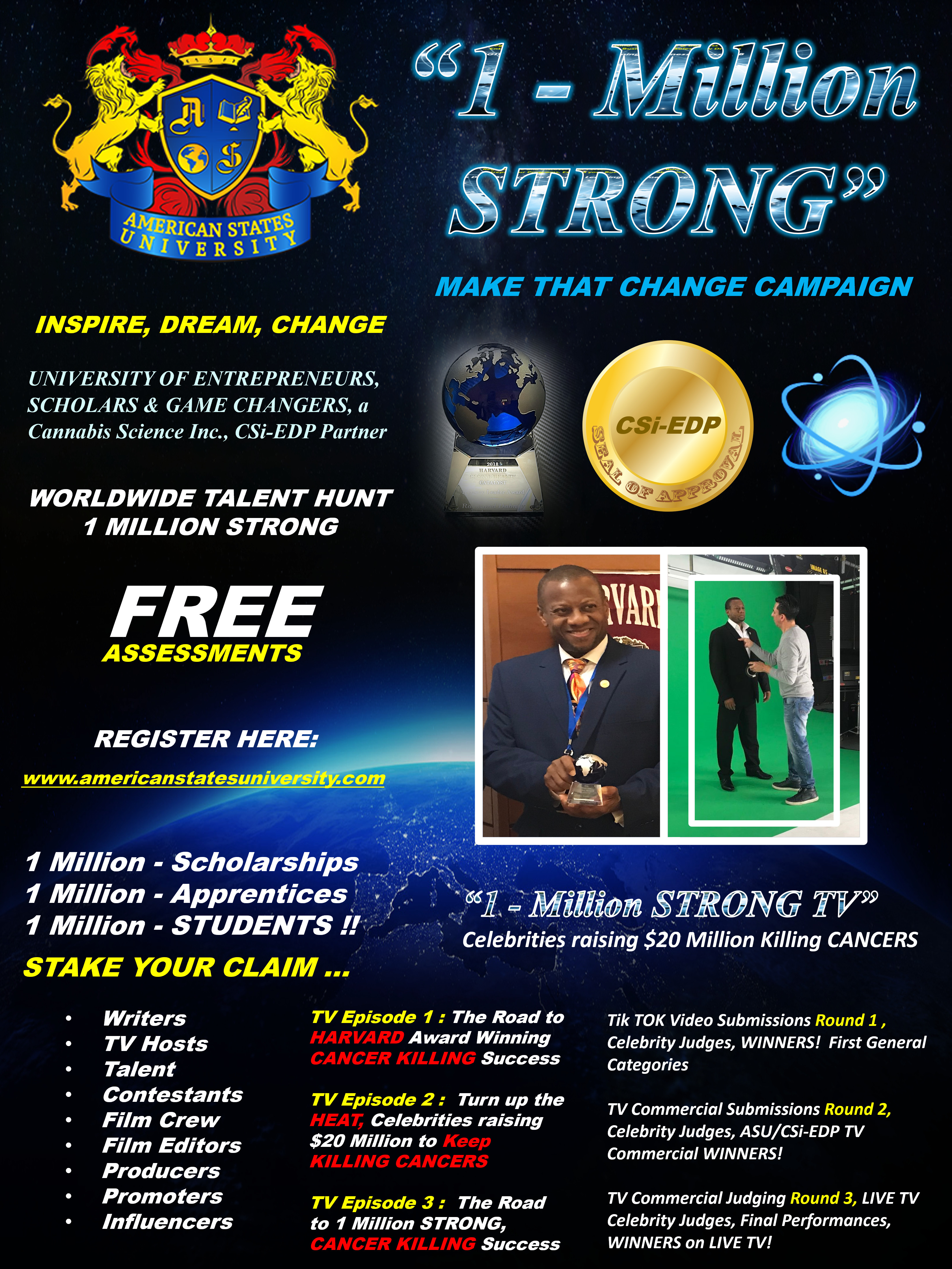 Sign up for a FREE Assessment to JOIN the UNIVERSITY Team or any ASU/CSi-EDP Team for whatever your AREA of Expertise is … then say no more… you already know.